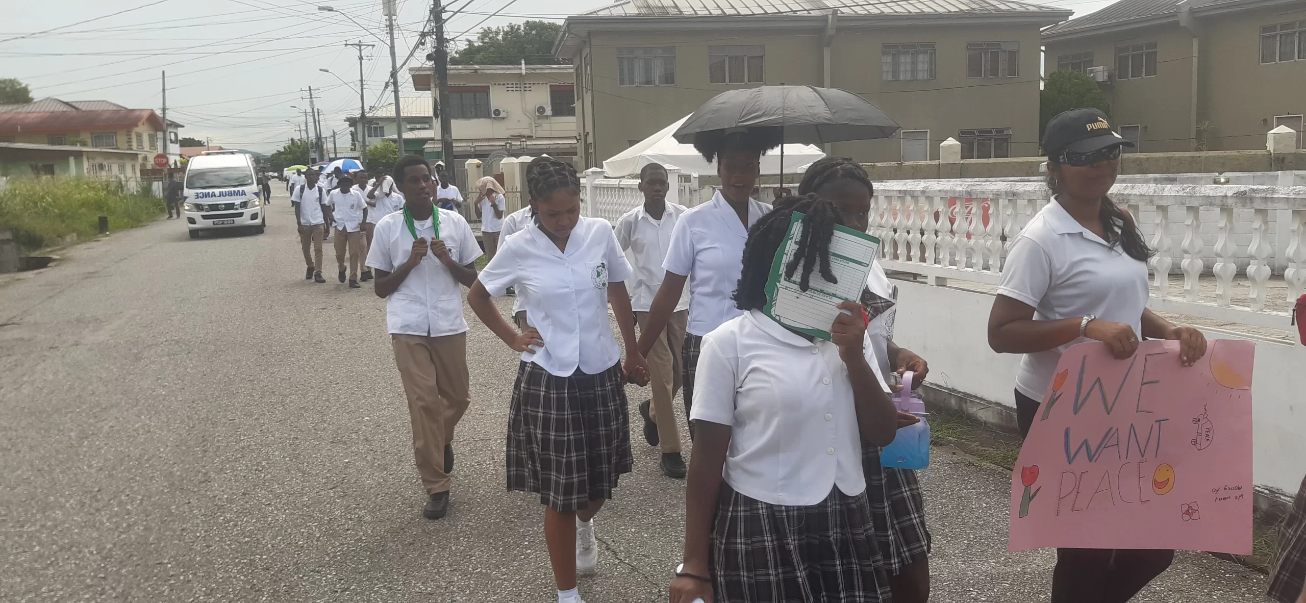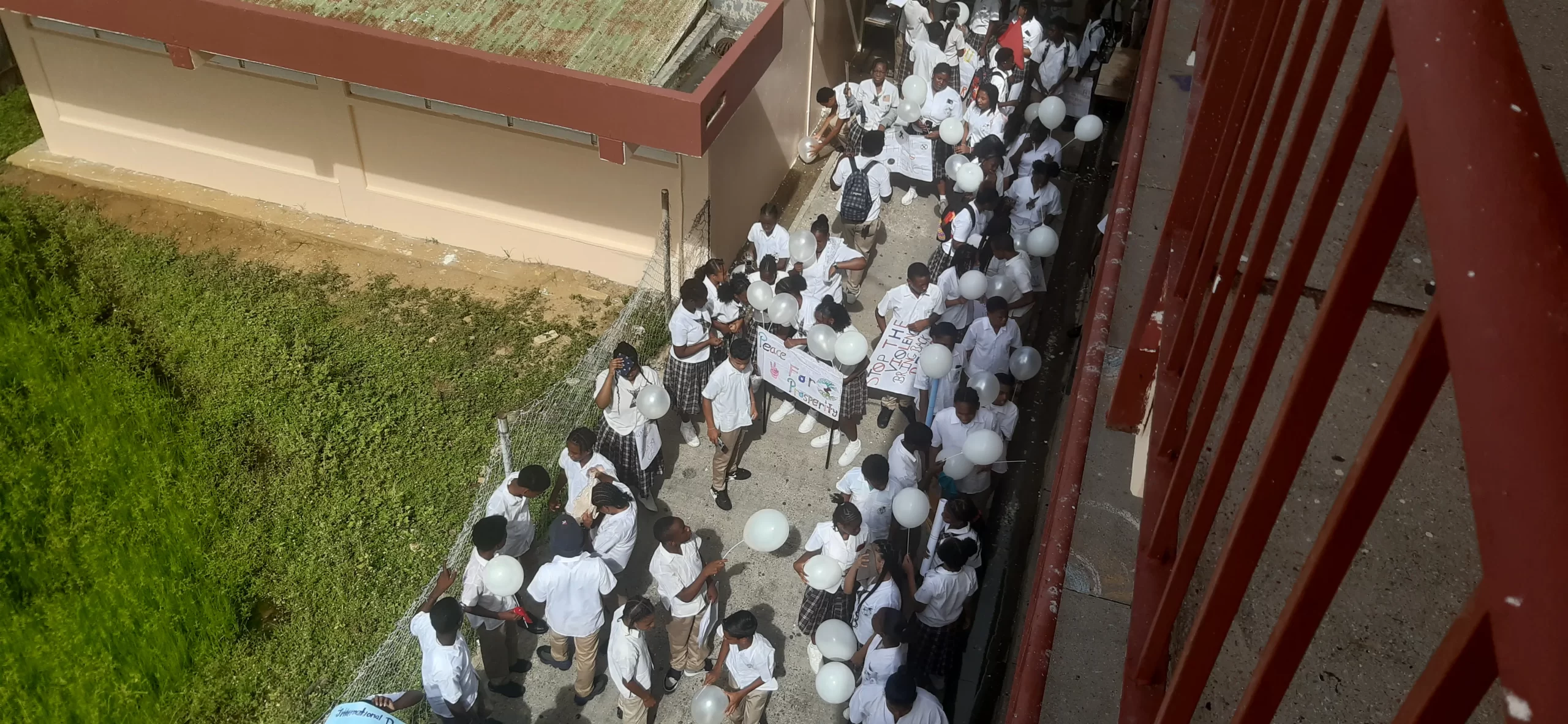 Teachers, students and parents left through the back of the school on Third Avenue ...we walked to 8th Street went across to Sixth Avenue just past St. George’s College, and then walked back to the front of the school via George Bailey Drive